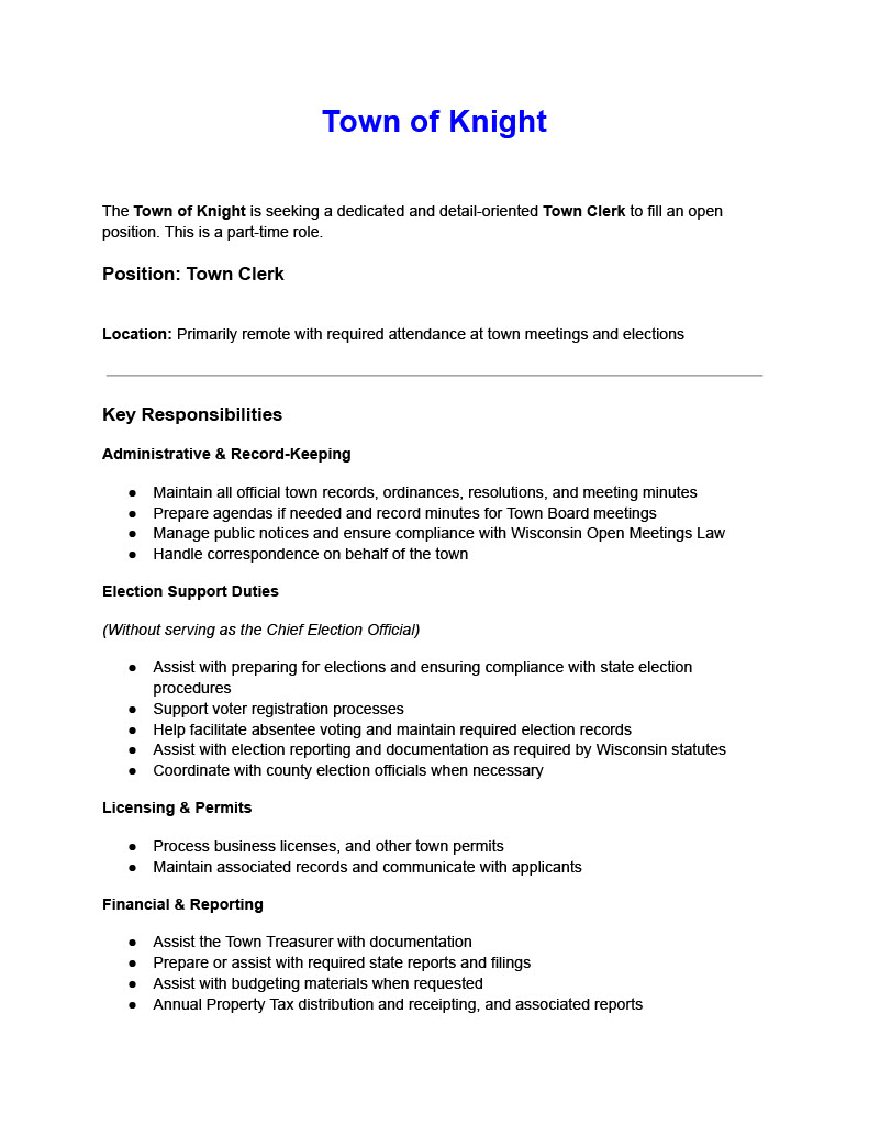 Job Posting – Town Clerk